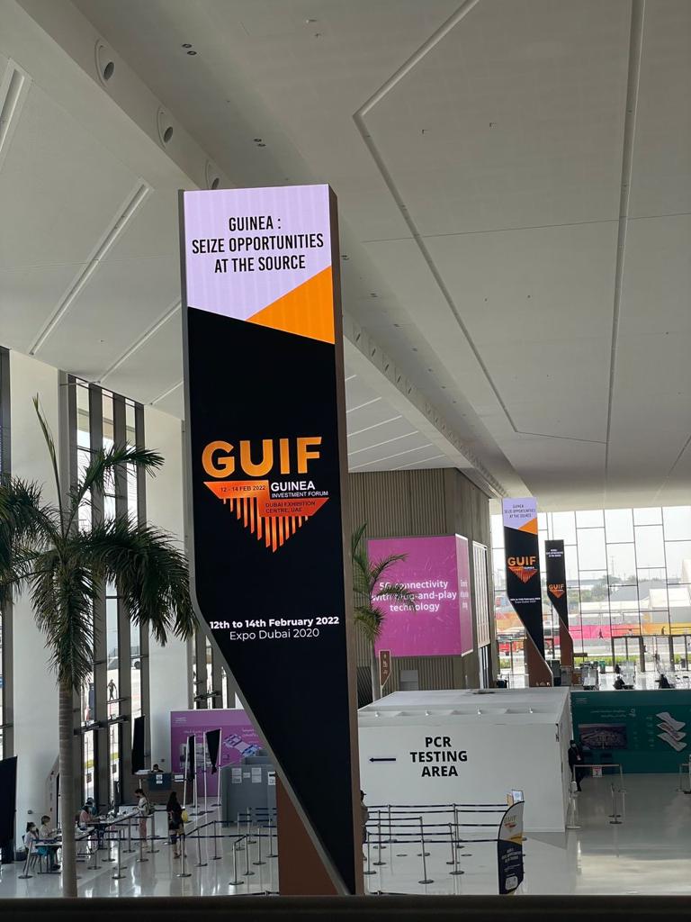 La SOGUIPAMI représentée par son Directeur General, M. Aboubacar Kagbè TOURE et la Cheffe du service Communication et des relations Gouvernementales , Mme Fatima Noelle CURTIS, participe à la 2eme Edition du forum Guineen d’Investissemrnt (GUIF) qui se tient du 12 au 14 Février 2022 à Dubaï, au sein de l’expo Dubaï 2020.