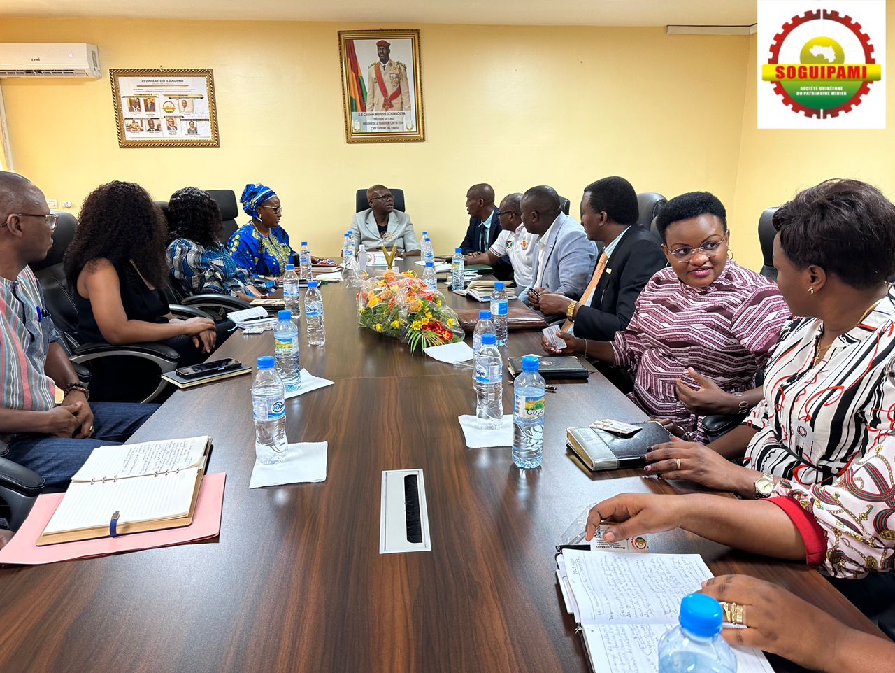 La délégation conduite par un représentant de la présidence burundaise a échangé avec la Direction Générale de la SOGUIPAMI sous le leadership de son Directeur Général M. Aboubacar Kagbè TOURE.